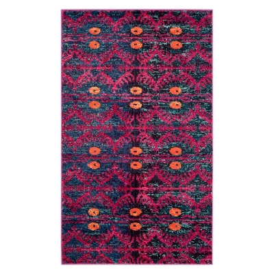 Free-spirited and vibrantly colored, the Safavieh Ruslan Collection imparts boho-chic flair on fanciful motifs and classic rug designs. Contemporary decor preferences are indulged in the trendsetting styling and addictive look of Ruslan. The alluring designs are inspired by traditional themes but become modernized with distinctive bright colors and precise defined details. Power-loomed using soft, durable synthetic yarns, Ruslan rugs create an erased weave patina that adds distinctive character. These are rugs are perfect for transitional living décor.